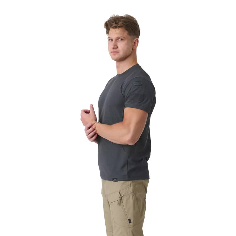 Тактическая футболка — это практичный вариант с короткими рукавами. Футболка изготовлена из быстросохнущей и приятной на ощупь ткани. Материал также отводит влагу — даже при сильном потоотделении. Она хорошо подходит как для занятий на свежем воздухе, так и для тренировок в помещении. Тактическая футболка сочетает в себе универсальный стиль и функциональность. Благодаря двум карманам на плечах и петлям вы можете носить с собой небольшие предметы, например очки. Чтобы персонализировать эту термоактивную футболку, прикрепите нашивку к панели с застёжкой-липучкой.