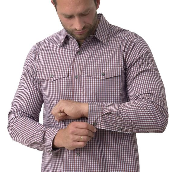 Клетчатая рубашка Concealed Carry отличается несколькими практичными решениями. Два нагрудных кармана и один потайной карман на молнии обеспечивают безопасное хранение ценных вещей. Она также оснащена уникальной системой застёжек, которые выглядят как пуговицы, но на самом деле являются кнопками, позволяющими мгновенно получить доступ к огнестрельному оружию, магазинам, телескопической дубинке и другим полезным аксессуарам, которые можно носить под рубашкой. Дополнительной деталью является нашивка из микрофибры, пришитая изнутри и полезная для чистки очков.