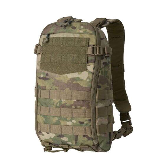 Smallpack от Guardian — это рюкзак, разработанный для тактического жилета Guardian Plate Carrier. Внутри он отделан мягкой тканью с крючками и петлями, что позволяет прикреплять дополнительные аксессуары. Основное отделение достаточно просторное, чтобы вместить гидратационный мешок или предметы аналогичного размера, дополнительные куртки, подкладку для пончо и т. д. Smallpack от Guardian обладает множеством функций. В верхней части есть внутренний карман на молнии, а ниже — панель с крючками и петлями и модульной системой ремней. На верхнем клапане, если его расстегнуть, есть модульная система для крепления аксессуаров, а по бокам — компрессионные ремни. Резиновый шнур в нижней части сумки позволяет прикрепить куртку или другие необходимые вещи.